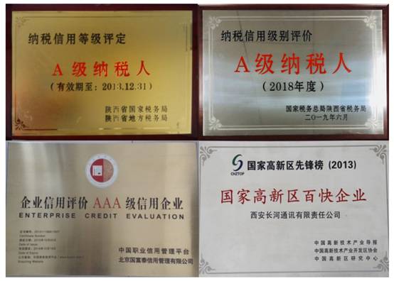 •獲得陜西省國家稅務局、地方稅務局頒發(fā)的“A級納稅人”