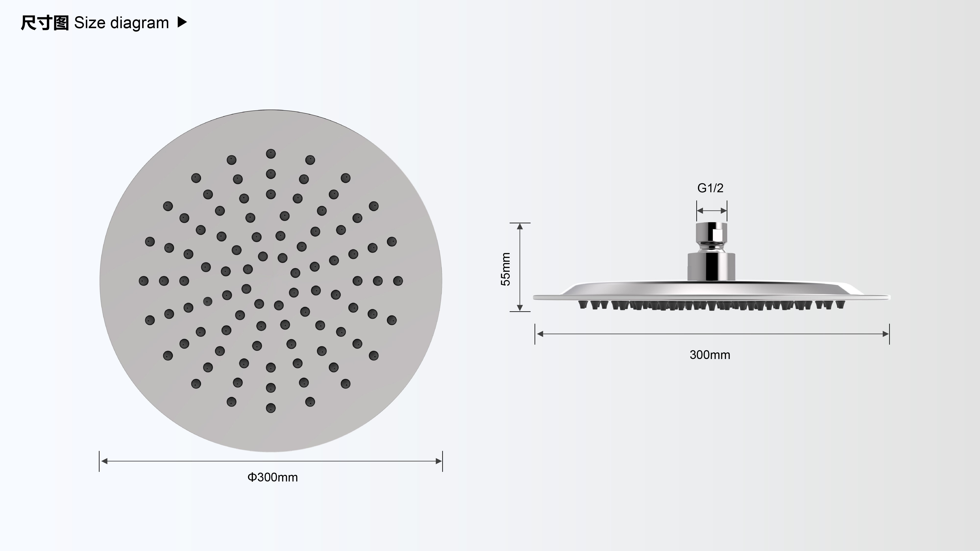 Size: Φ300mm;CUPC/ WaterSense/ WRAS/ ACS認證