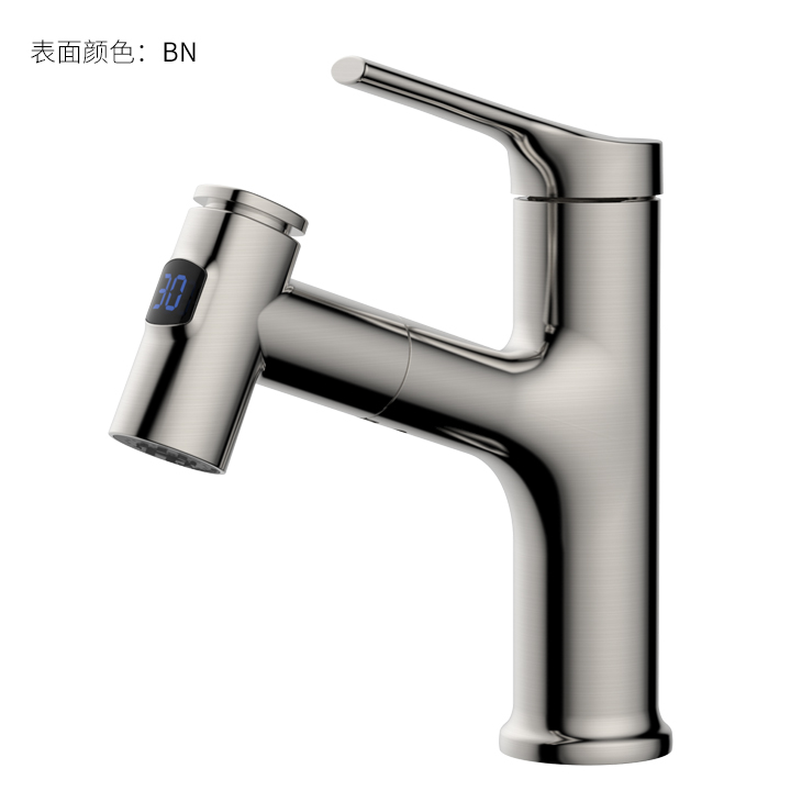 數(shù)顯面盆抽拉龍頭,解鎖龍頭舒適用法;360°全方位清洗;日常洗頭利器,抽拉出水輕松洗;按壓切換兩功能水花抽拉頭;出水溫度實時看得見,安全防燙