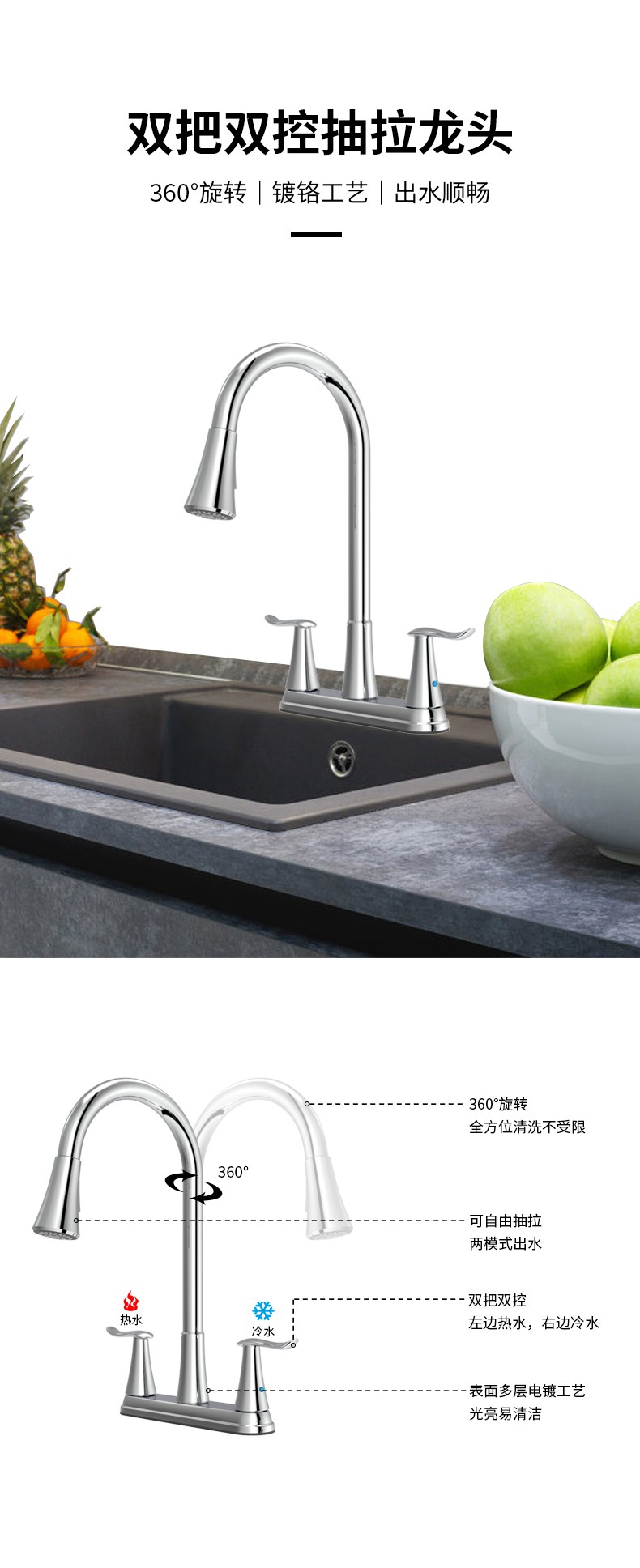 FK8206 雙把8”廚房抽拉龍頭