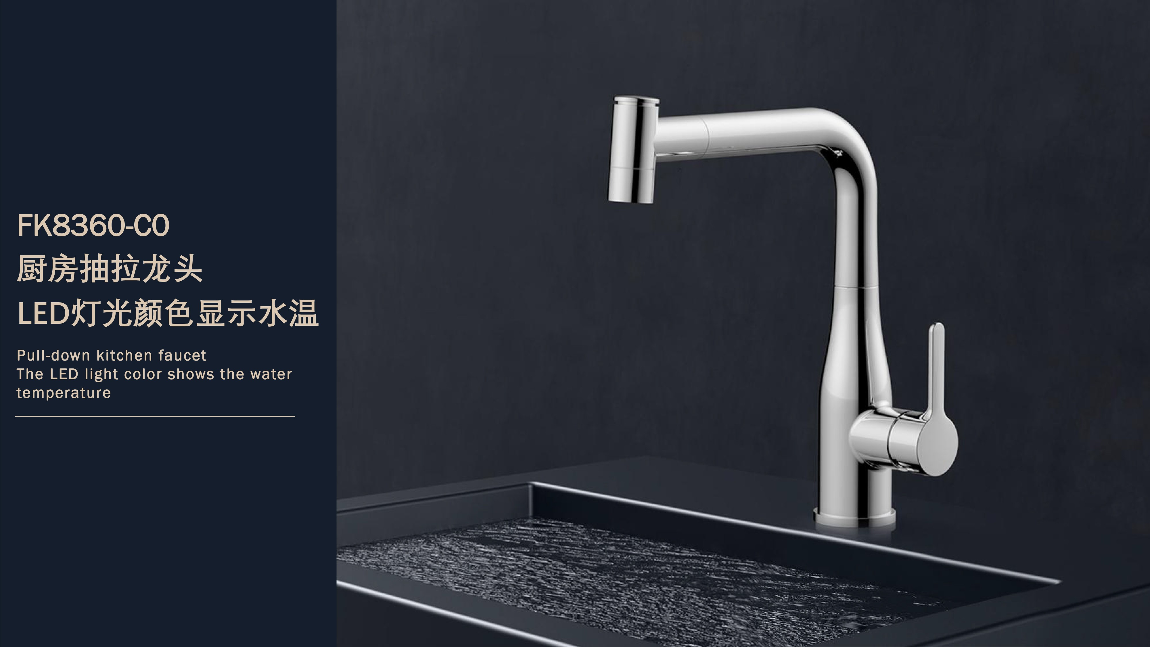 FK8360-C0 LED燈光顏色顯示水溫廚房抽拉龍頭